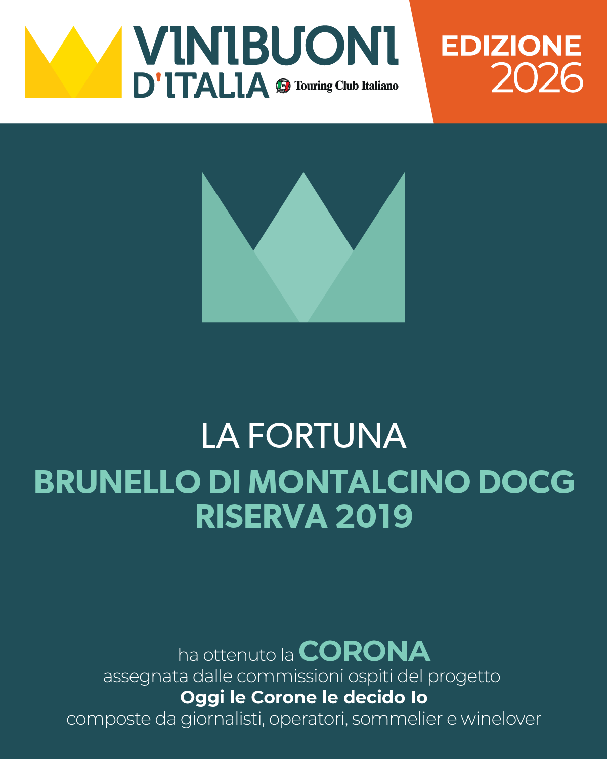 La Fortuna Brunello di Montalcino DOCG Riseva 2013 ha ottenuto la CORONA DEL PUBBLICO assegnata dalle commisioni di winelovers, operatori e giornalisti del progetto "Oggi le Corone le decido io".